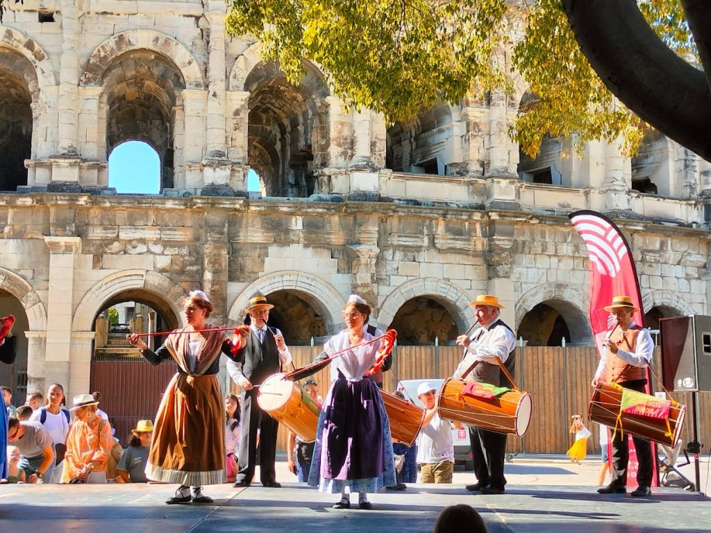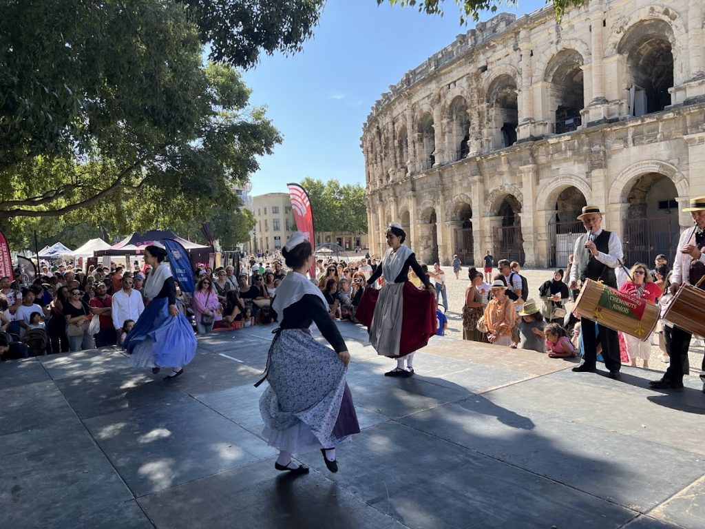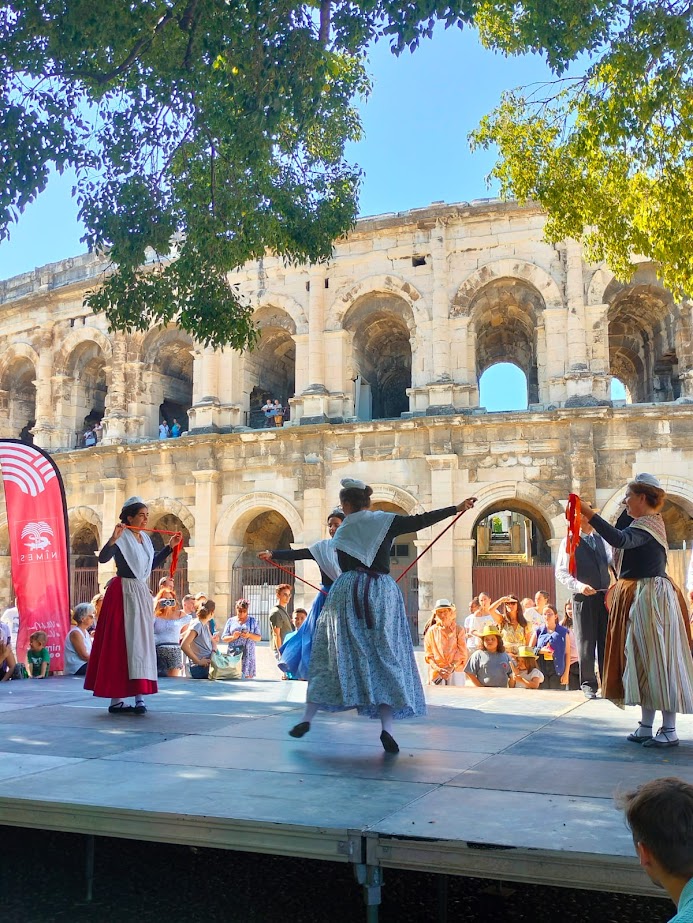 Les farandoleurs ont participé au Forum des Associations ce samedi 6 septembre sur l’Esplanade Charles de Gaulle à Nîmes. Ils se sont également produits sur scène au pied de arènes devant un large public.