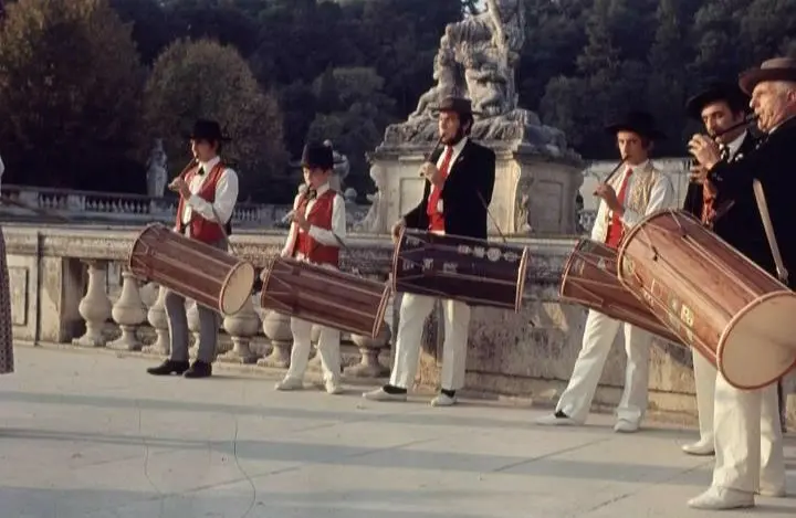Pour accompagner nos danseurs, les Tambourinaires — que Alphonse Daudet appelait affectueusement les « Tutu-Panpan » — font vibrer l’air de Provence.
